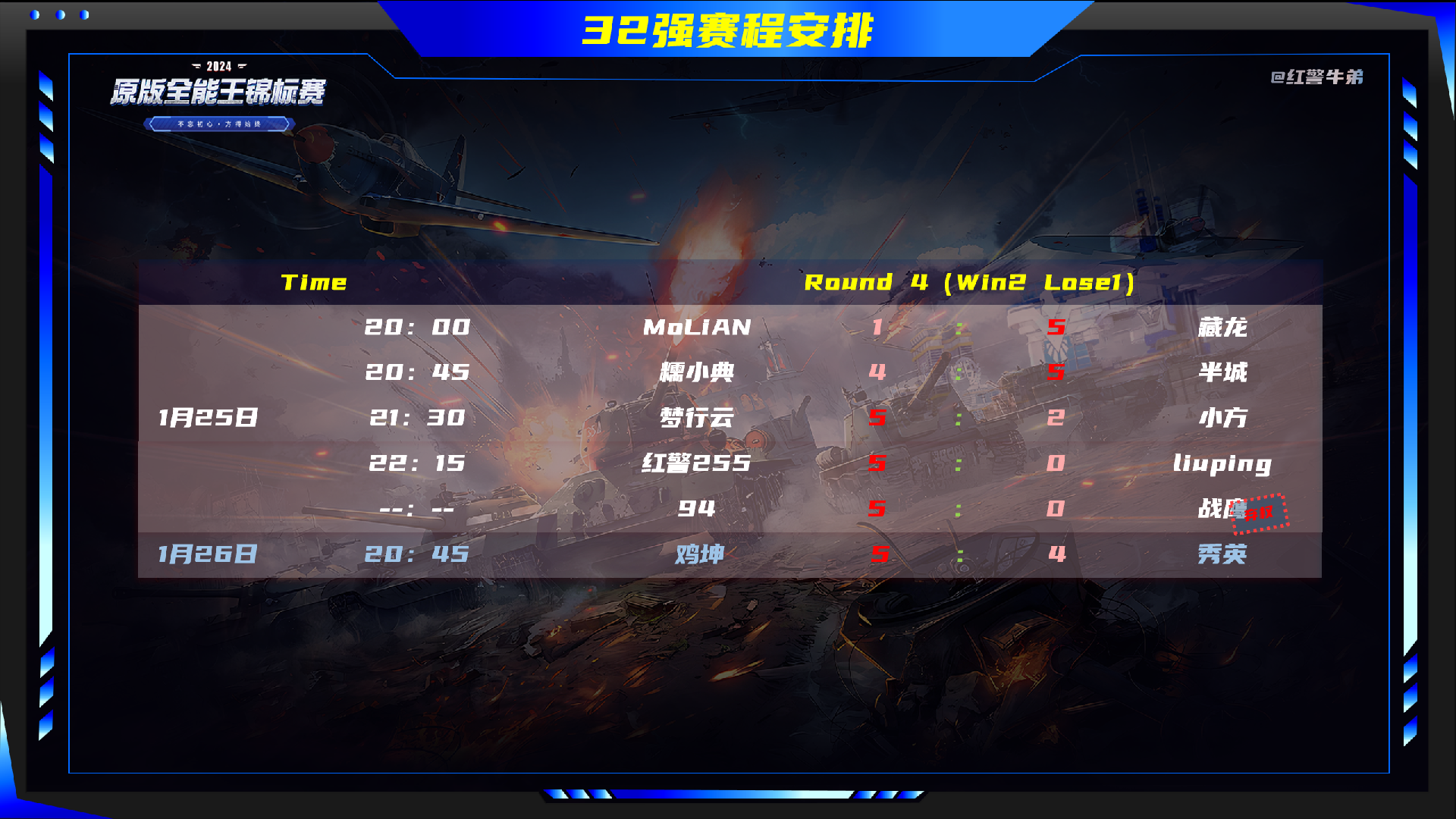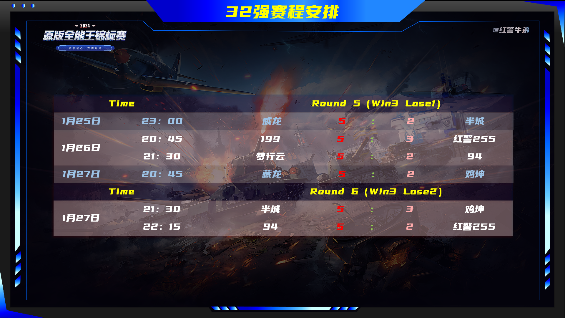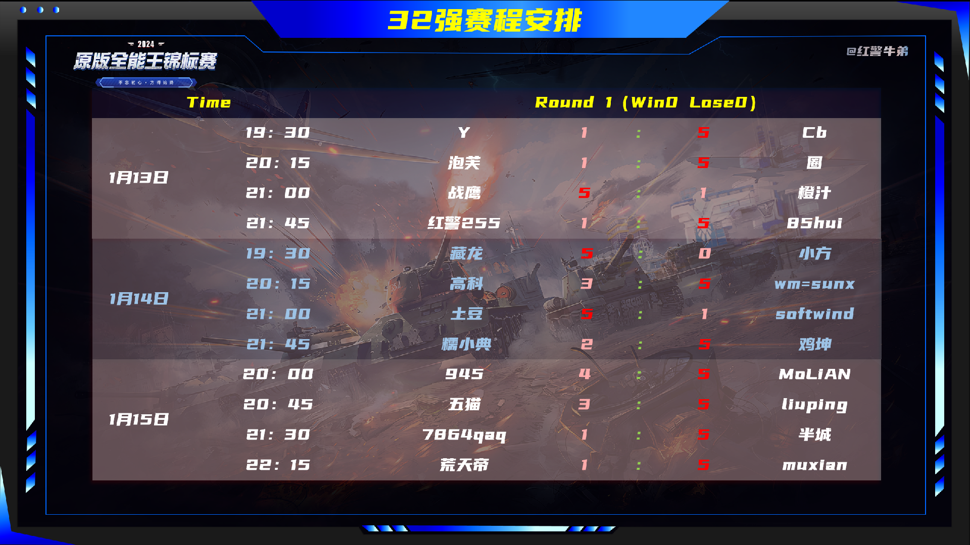 32强瑞士轮:2025年1月13日-2025年1月27日